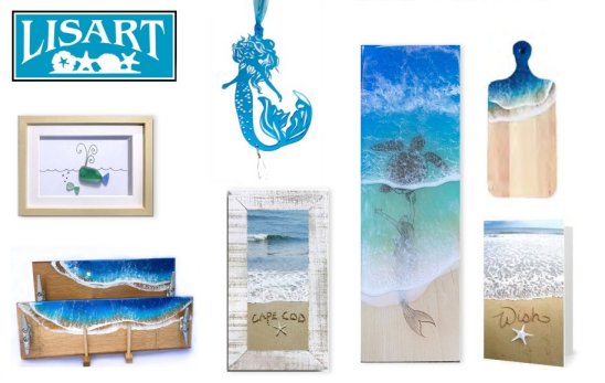 Lisart's signature pieces are driftwood looking framed beach photos of